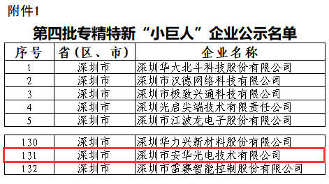 8月8日,國(guó)家工信部對(duì)第四批專精特新“小巨人”企業(yè)名單進(jìn)行公示,安華光電以領(lǐng)先的產(chǎn)品與技術(shù)、高質(zhì)量的企業(yè)創(chuàng)新能力,榮獲新一批國(guó)家級(jí)專精特新“小巨人”企業(yè)榮譽(yù)稱號(hào)。