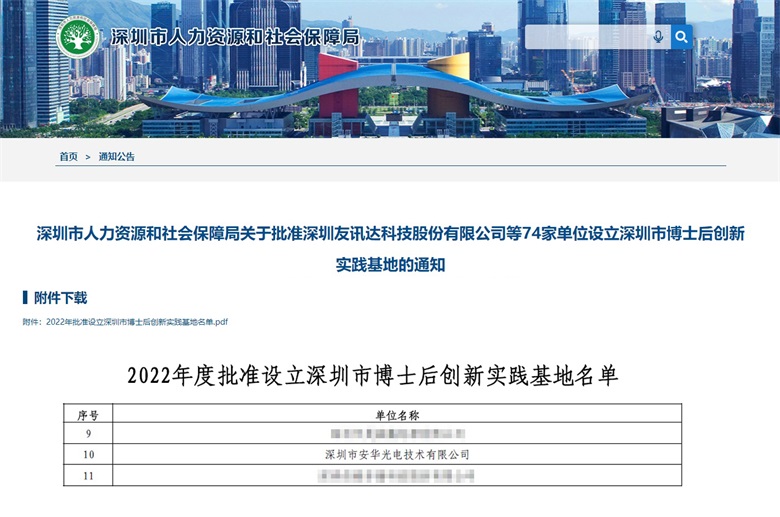 近日,由深圳市人力資源和社會保障局組織開展的2022年度博士后創(chuàng)新實踐基地設立工作圓滿結束,經單位申報、專家評審、網絡公示等程序,74家單位獲批深圳市博士后創(chuàng)新實踐基地,安華光電成功入選,開啟構筑人才集聚高地的新篇章。