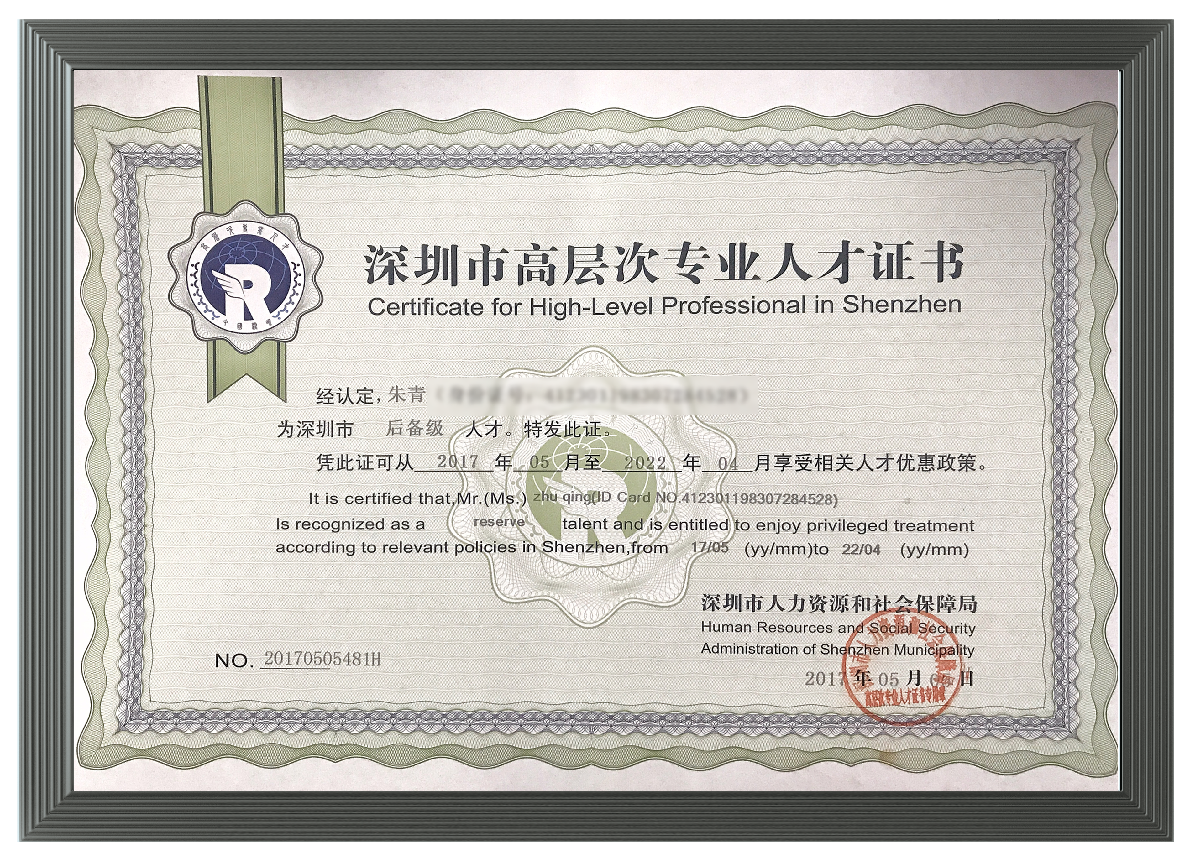 查看詳情2017年5月,根據(jù)深圳市人力資源和社會(huì)保障局《關(guān)于深圳市高層次專業(yè)人才認(rèn)定的公示》文件要求,安華光電副總經(jīng)理朱青博士滿足人才認(rèn)定條件,作為國(guó)家高新技術(shù)企業(yè)研發(fā)機(jī)構(gòu)第一負(fù)責(zé)人,和國(guó)家、省、市科技計(jì)劃項(xiàng)目核心成員,榮獲“深圳市后備級(jí)人才”稱號(hào)。......