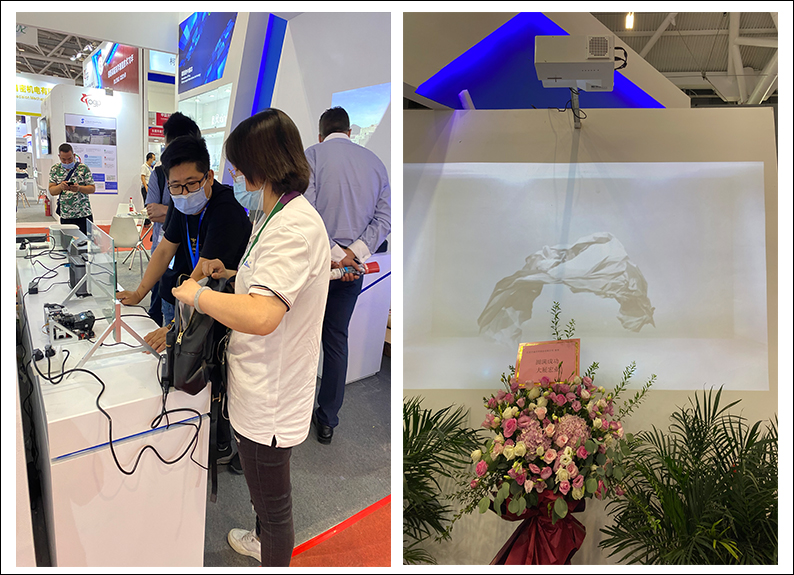 在7號館7B21區(qū),安華光電攜帶新品HY37H超短焦、P13HGA、F26GF_MFB、F57等光學(xué)模組,向參展觀眾展示其投影效果,憑借著小巧的形象以及穩(wěn)定的性能,頻頻獲得參展觀眾的關(guān)注,吸引了眾多客商的駐足觀看與咨詢洽談。