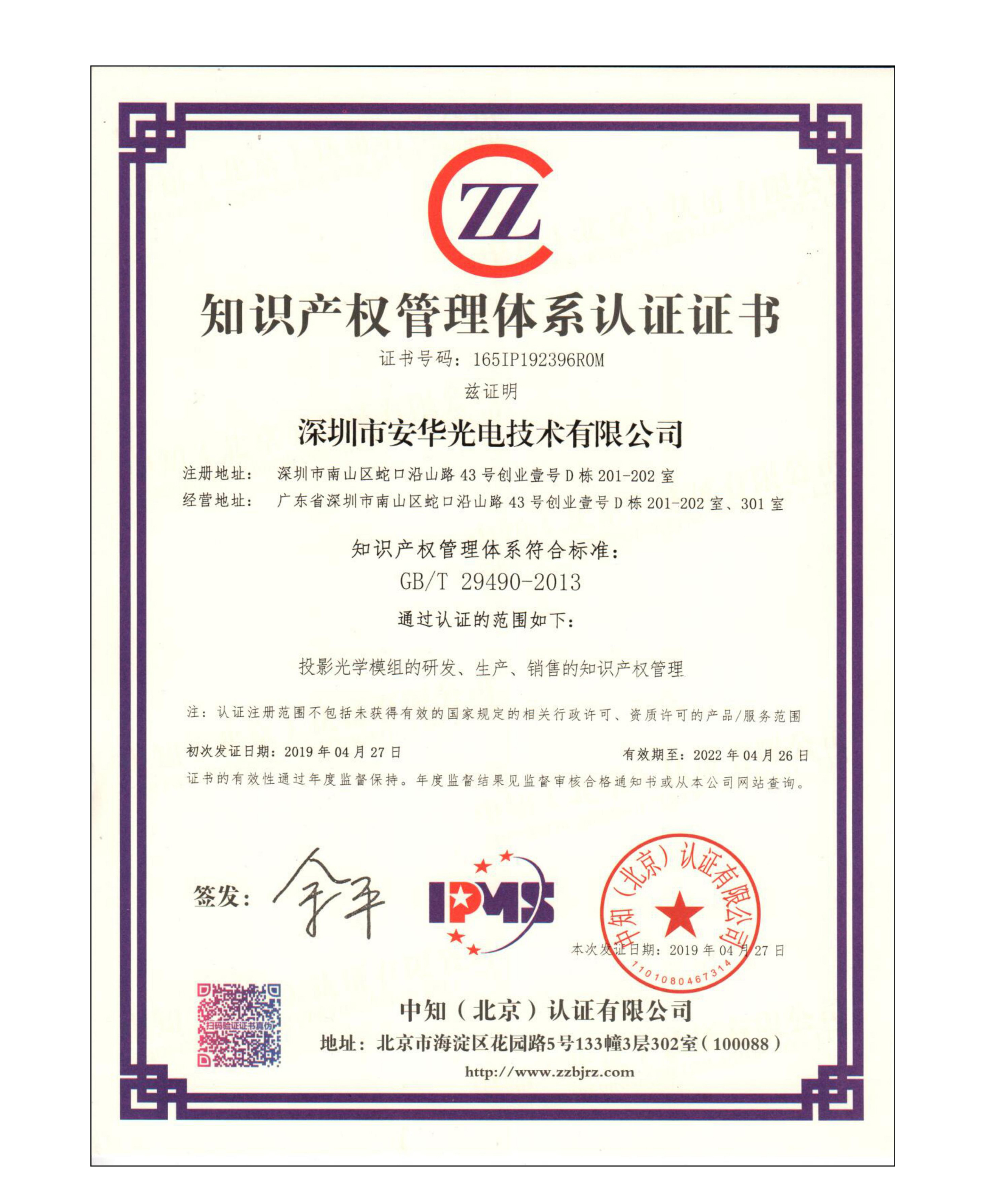 Details2019年4月27日,安華光電憑借其規(guī)范完善的知識(shí)產(chǎn)權(quán)管理,獲得由國(guó)內(nèi)權(quán)威知識(shí)產(chǎn)權(quán)認(rèn)證機(jī)構(gòu)——中知(北京)認(rèn)證有限公司所頒發(fā)的知識(shí)產(chǎn)權(quán)管理體系認(rèn)證證書(證書編號(hào):165IP192396R0M)。......